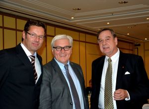 Empfang des Bundesverband mittelständische Wirtschaft BVMW 2014 - im Bild Links Stephan Acker (Acker Raum-Systeme GmbH und Mitglied des BVMW), Mitte Bundesaußenminister Frank-Walter Steinmeier, Rechts der Präsident des IBFW Karl-Heinz Thor.